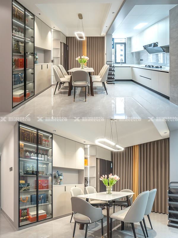 滿(mǎn)墻餐邊柜搭配玻璃柜門(mén),層次感直接拉滿(mǎn)