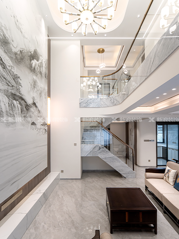 #長(cháng)沙裝修 #常德裝修 #新浪裝飾 #長(cháng)沙麗爾曼頓全屋定制 #新中式風(fēng)格 #裝修設計 #家居裝飾分享 #大理石樓梯踏步 #客廳電視背景墻 #水墨畫(huà)背景