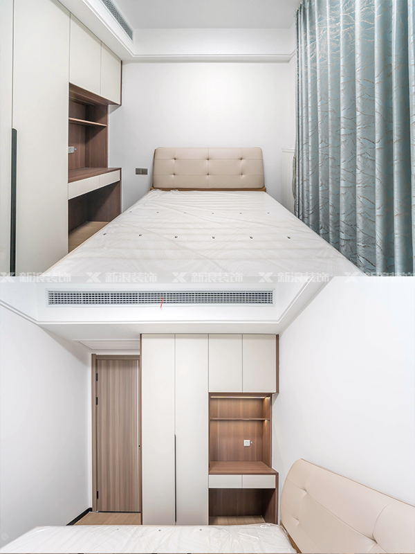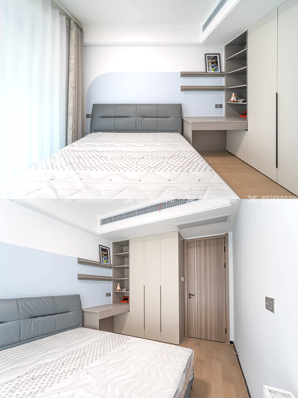 一門(mén)到頂的設計,臥室柜做書(shū)桌衣柜一體化,簡(jiǎn)單又實(shí)用