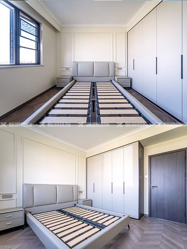 全屋高端定制:柜體板材18厚杉木實(shí)芯板,柜門(mén)有pet膚感、高光、超晶、五金使用原裝進(jìn)口奧地利百隆五金