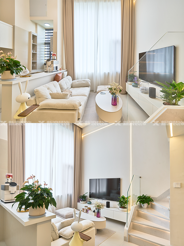 客廳做半搭布局,靠窗挑空,雖然是公寓,但也感覺(jué)寬闊不壓抑